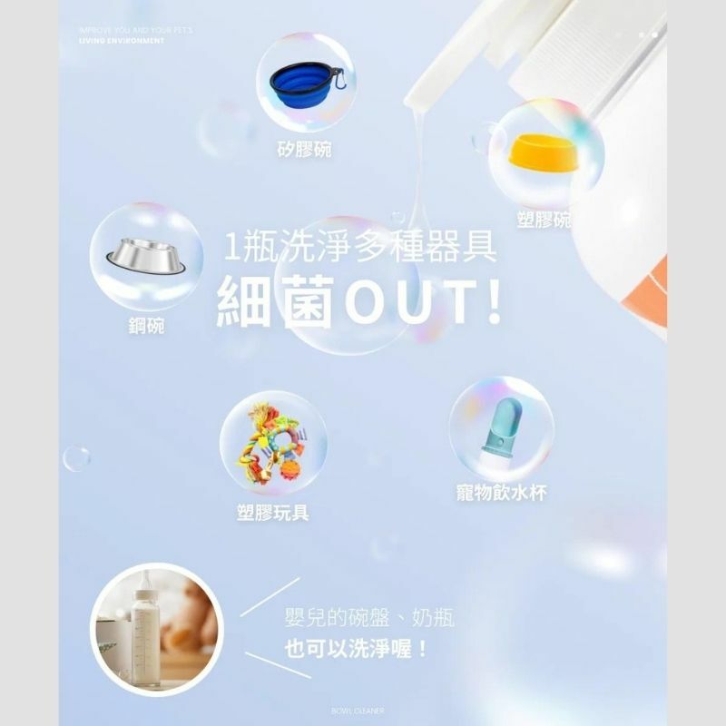 別再使用人們所使用的洗碗精給主子的碗清洗了,選錯了洗碗精可是會影響主子的健康的,茶樹柑橘,中毒過敏危害健康,洗不乾淨殘留髒臭沒食慾,就讓BoBo 寵物清潔專家提供一款專屬的食器洗潔精吧!含有小分子深層洗淨,不管是喝水的水杯,到處玩的塑膠玩具,及各式的碗盆,只要用精心設計過的按壓噴嘴,滴在海綿菜瓜布上使用清洗,清洗乾乾淨淨,讓主子健康無敵!