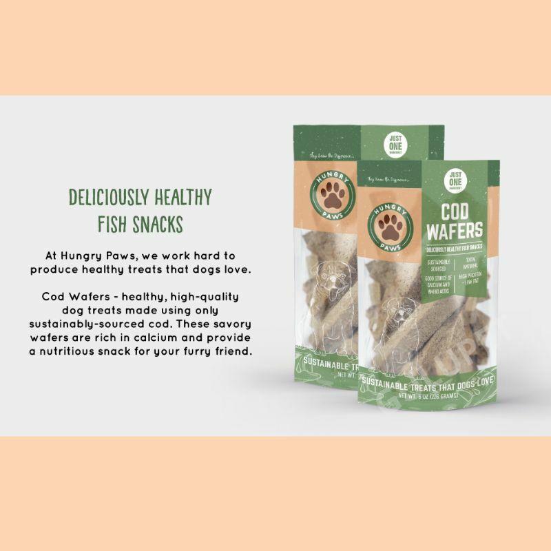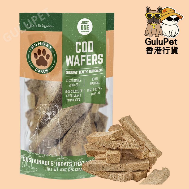 全天然單一成分鱈魚威化零食。 100% 鱈魚,未添加任何其他成分。
