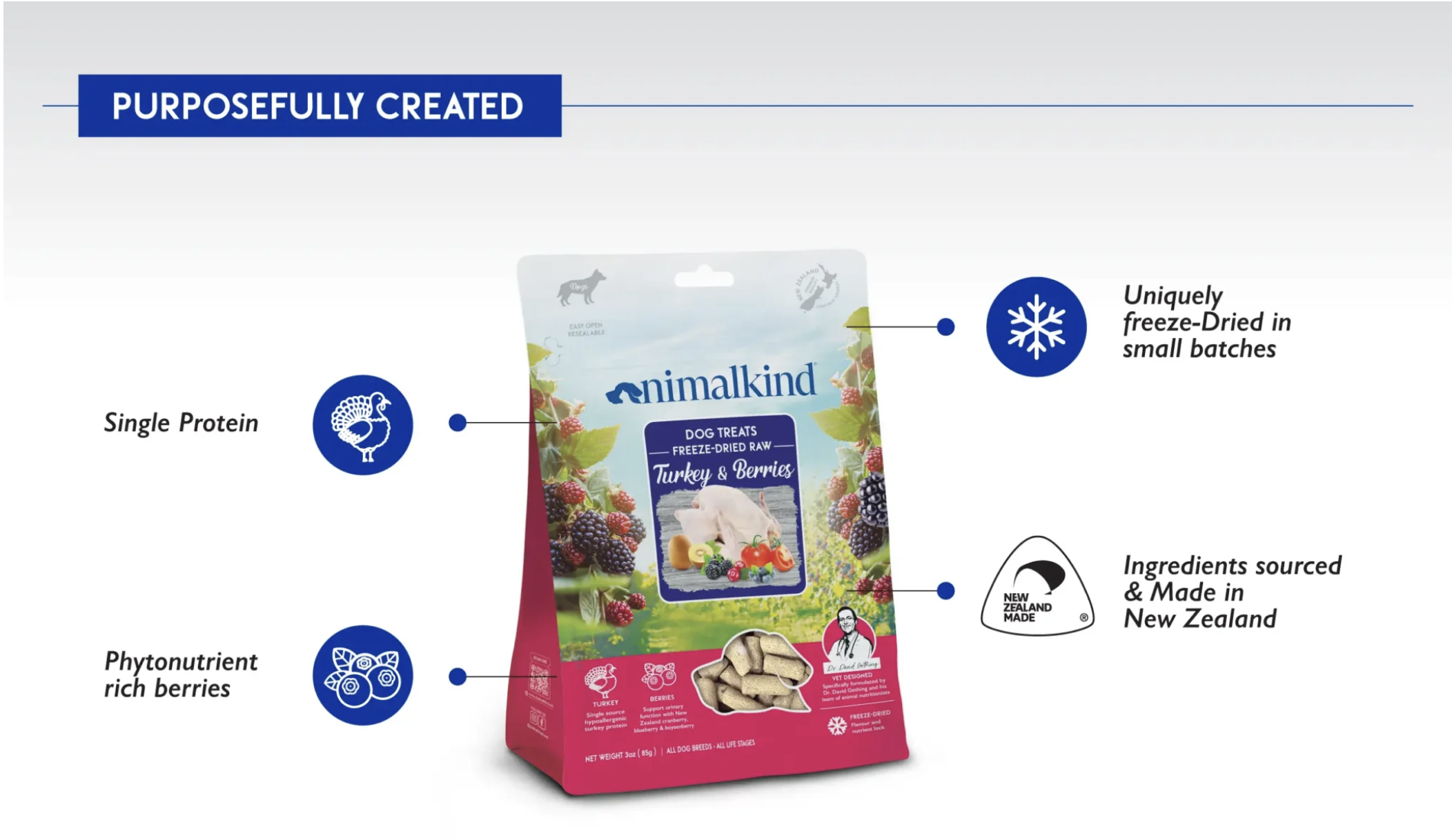 由火雞和漿果製成的美味健康的凍乾食品,支持泌尿系統健康和整體健康。